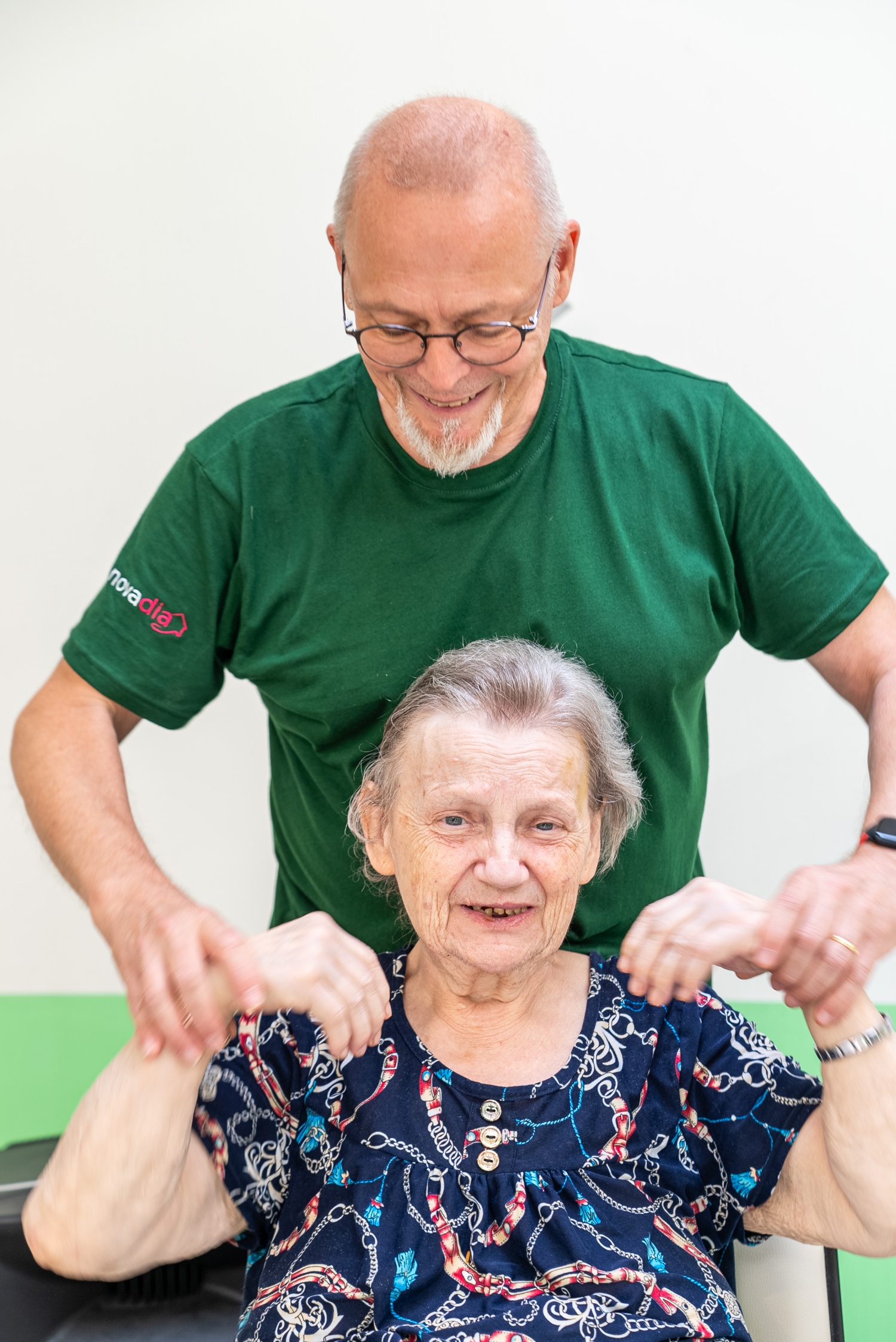 De zorgprofessionals van Novadia helpen elke bewoner dagelijks bij de dagelijkse activiteiten. De behoeften worden onmiddellijk beoordeeld zodra ze worden vastgesteld, om onmiddellijke en passende zorg te garanderen. De coördinerende arts, verpleegkundigen en zorgassistenten, psycholoog, psychomotorisch therapeut en ergotherapeut komen regelmatig samen met bewoners en hun familie.