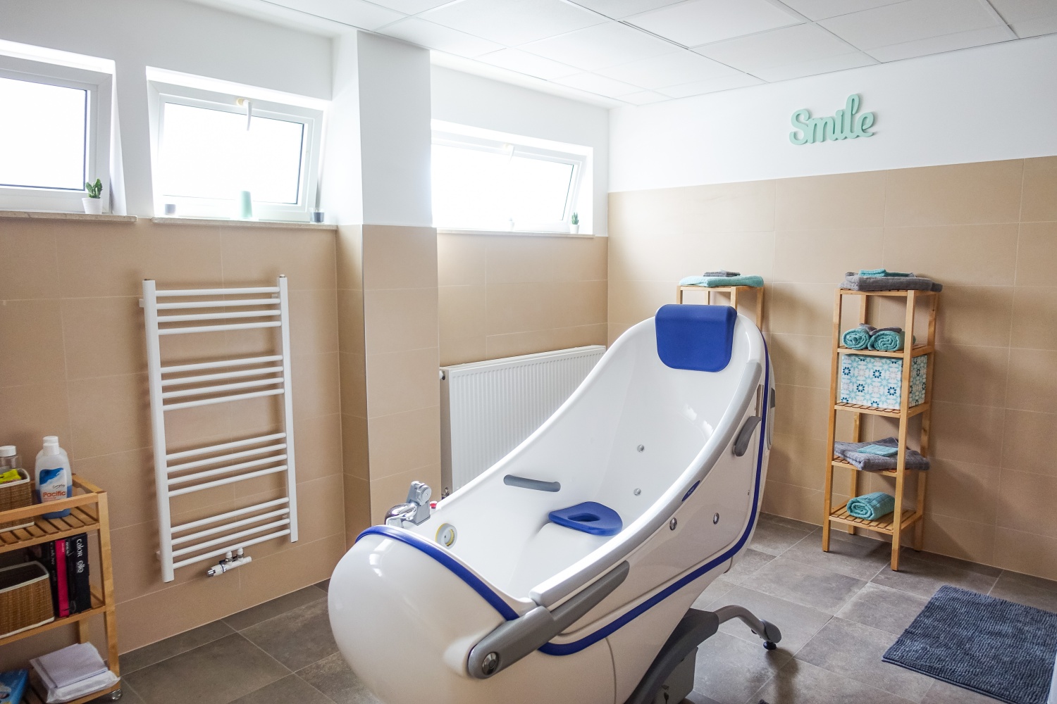 Ruimtes voor fysiotherapie, ergotherapie en balneotherapie, kapper en pedicure.