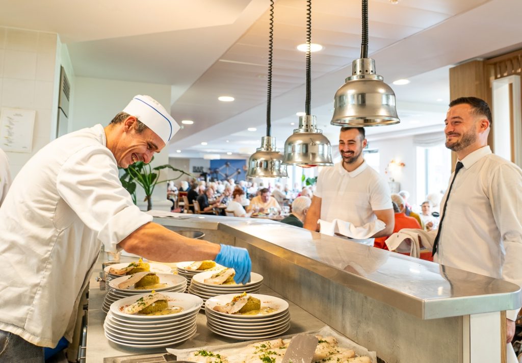De personalisering van de zorgplannen van onze bewoners wordt ook weerspiegeld in onze hotel- en cateringdiensten: ontbijttijden, dutjes, hulp bij het slapengaan, avondthee, eetgewoonten en -voorkeuren, allergieën …. We doen ons best om ons aan te passen aan de levensstijl van onze bewoners.
