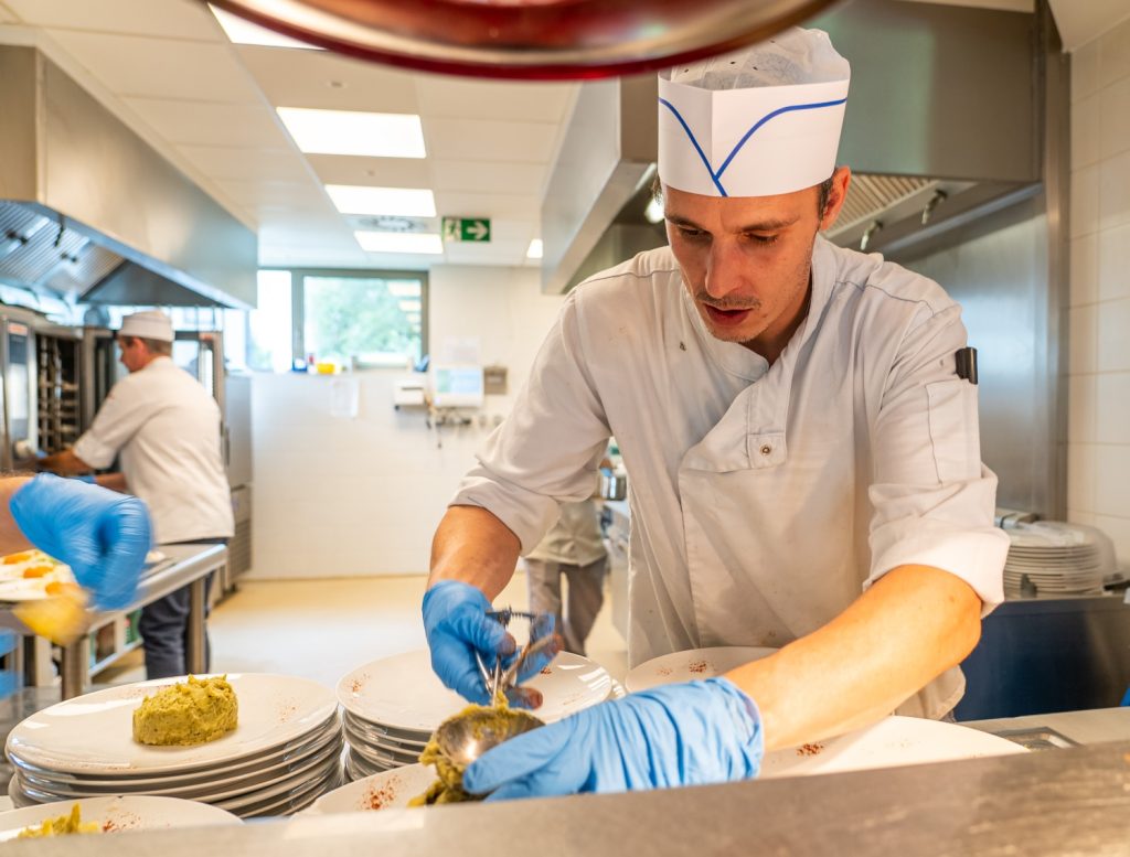 Onze chef-koks streven voortdurend naar uitmuntendheid en volgen regelmatig trainingen bij gerenommeerde instituten zoals Ferrandi, zodat ze op de hoogte blijven van de nieuwste culinaire trends. Deze training omvat ook het leren van technieken voor het werken met aangepaste texturen, om menu’s aan te passen aan de specifieke voedingsbehoeften van de bewoners.